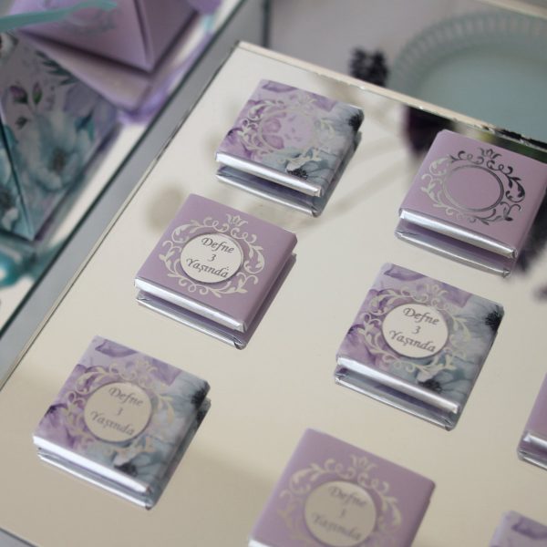 Esas ürün: Mor Mermer Gümüş Çikolata Ambalajı